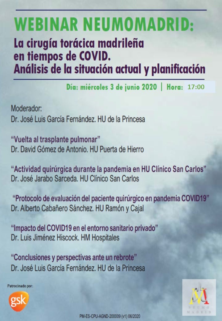 Home > Mis Servicios > Formación > Cursos Online > LA CIRUGÍA TORÁCICA MADRILEÑA EN TIEMPOS DE COVID19. ANÁLISIS DE LA SITUACIÓN ACTUAL Y PLANIFICACIÓN.