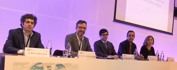 Esta mesa, además de con los moderadores, el Dr. González Torralba y el Dr. Salgado, ha contado con las ponencias de tres expertos: el Dr. Manuel Valle Falcones, neumólogo del Hospital Universitario Puerta de Hierro (Madrid), que ha explicado los modelos asistenciales en la atención del paciente de EPOC frágil; el Dr. Javier De Miguel Díez, jefe de Sección de Neumología del Hospital Universitario Gregorio Marañón (Madrid), que ha expuesto la relación entre la EPOC y la contaminación ambiental; y la Dra. María Cruz González Villaescusa, neumóloga del Hospital Clínico Universitario de Valencia, que ha hablado sobre la EPOC precoz.