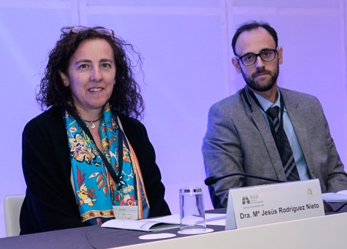 La Dra. López Riolobos, junto a la Dra. Olga Mediano, neumóloga de la Unidad de Trastornos Respiratorios del Sueño de la Sección de Neumología del Hospital Universitario de Guadalajara y miembro del Ciber de Enfermedades Respiratorias (CIBERES), han moderado esta mesa, cuyo objetivo ha sido “dar cabida y representatividad a la patología de sueño, y desarrollar temas tan actuales y prevalentes como la cronodisrupción del sueño y las alteraciones circadianas de nuestra sociedad, la asociación entre apneas del sueño y alteraciones inmunológicas y por supuesto, el papel de las nuevas tecnologías en el avance del diagnóstico del SAHS”. “Se trata de darle valor a la necesidad de un sueño de calidad para tener una buena salud junto a lo más actual del tema”, ha apuntado la Dra. Mediano.