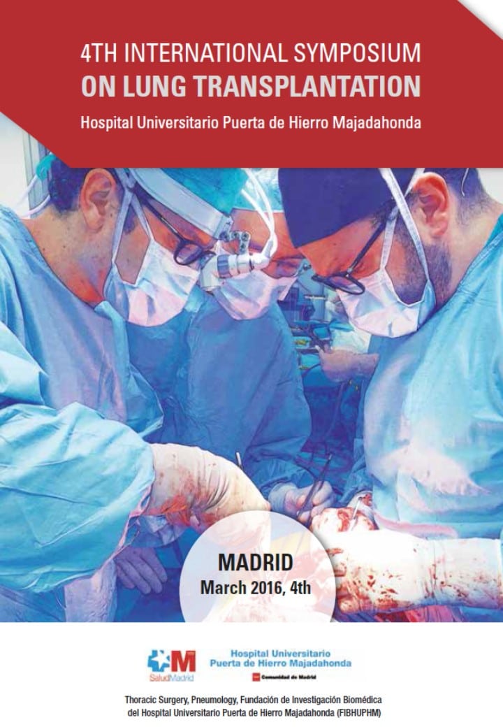 Dear colleagues,It is our pleasure to announce the 4th international meeting on lung transplantation to be held on 4 March 2016 at Hospital Universitario Puerta de Hierro Majadahonda.This edition we will have the privilege to share the knowledge and experience of international experts in the diverse topics that will be covered (extracorporeal membrane oxygenation, pediatric lung