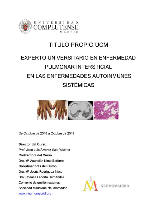 La primera edición del curso de experto universitario de la universidad complutense de Madrid titulado las enfermedades intersticiales difusas en las enfermedades autoinmunes sistémicas se llevará a cabo en la facultad de medicina durante el curso 2018/2019.
